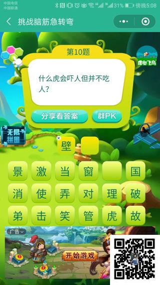 微信挑戰(zhàn)腦筋急轉(zhuǎn)彎答案_微信小程序挑戰(zhàn)腦筋急轉(zhuǎn)彎攻略
