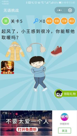 第5關問題:起風了小王感到很冷你能幫他取暖嗎