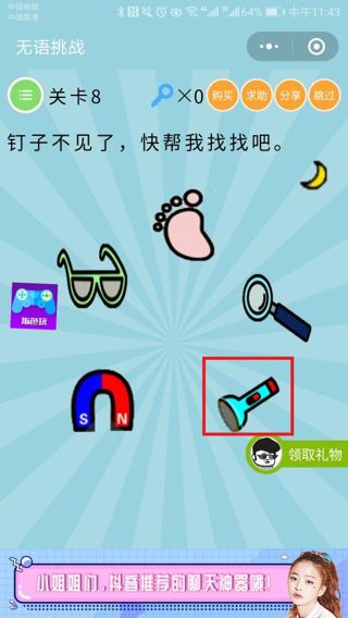 答案:點擊手電筒,打開手電筒就可以找到釘子啦