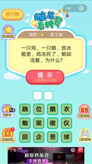 微信小腦筋答案第1-10關(guān)_微信小程序小腦筋攻略第1-10關(guān)