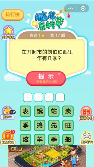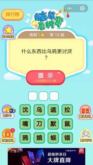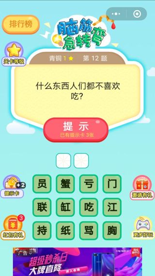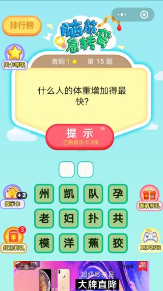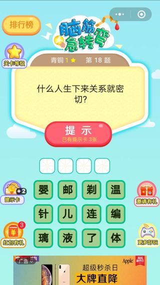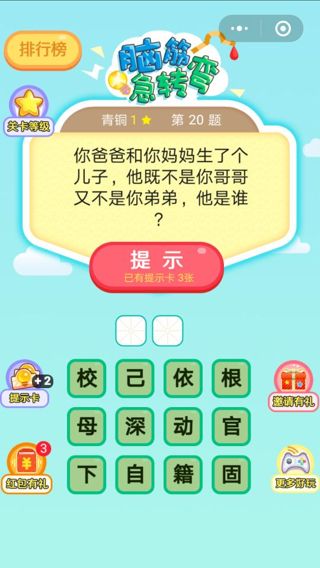 微信小腦筋答案第11-20關_微信小程序小腦筋攻略第11-20關