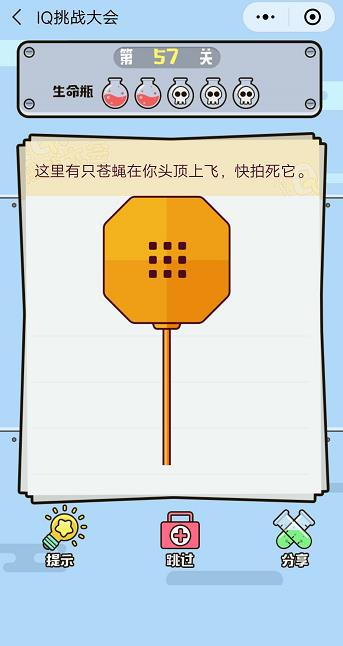這里有只蒼蠅在你頭頂上飛,快拍死它