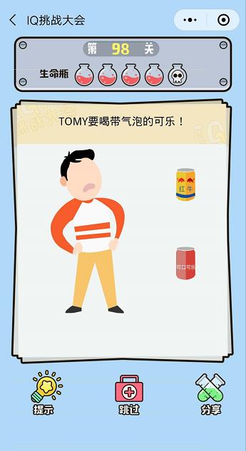 答案:搖晃題目中的可樂(lè),灑出來(lái)之后放在他嘴里