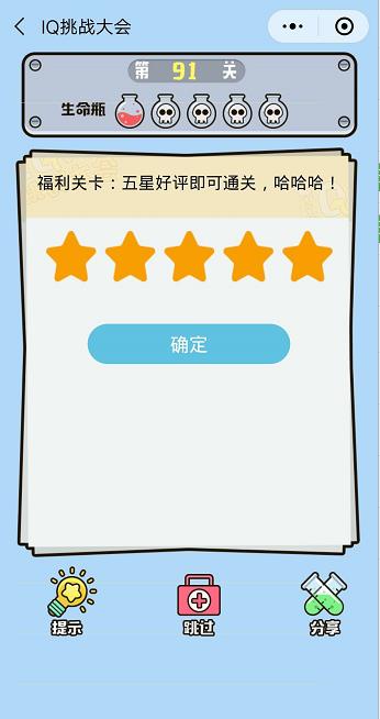 福利關(guān)卡:五星好評(píng)即可通關(guān),哈哈哈!