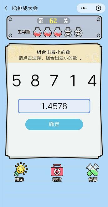 微信IQ挑戰大會第62關【組合出最小的數】答案攻略