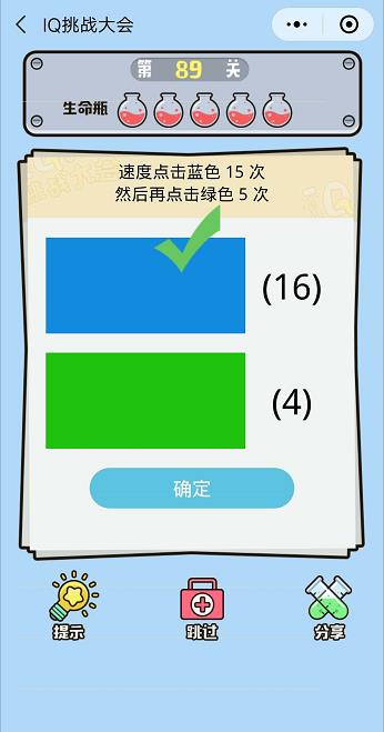 微信IQ挑戰大會第89關【速度點擊藍色15次然后再點擊綠色5次】答案攻略