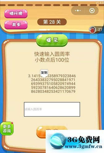 第二十六關,掙脫這座山將000移開即可變成1kg,即可通關第二十七關,強迫癥不能忍!將粉色的多余部分用手指擦幾下即可通關,兩處都是第二十八關,快速輸入圓周率小數點后100位常按屏幕中央的文字,點擊復制,然后粘貼,點確定即可通關第二十九關,有幾處不同的地方呢?每條腿都要算的,答案是14第三十關,我國牛奶主要產自哪里?點擊標題中的牛字即可通關