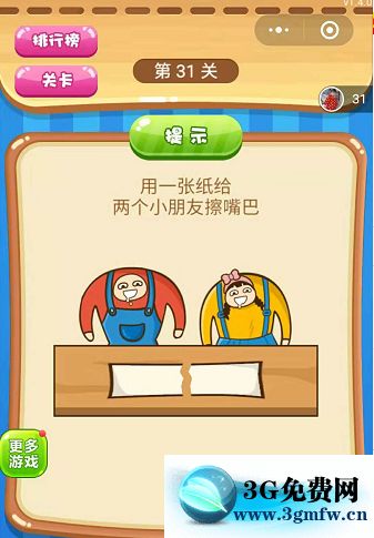 第三十一關(guān),用一張紙給兩個小朋友擦嘴巴