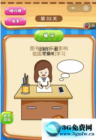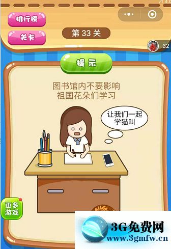 第三十三關(guān),圖書館內(nèi)不要影響祖國花朵們學(xué)習(xí)