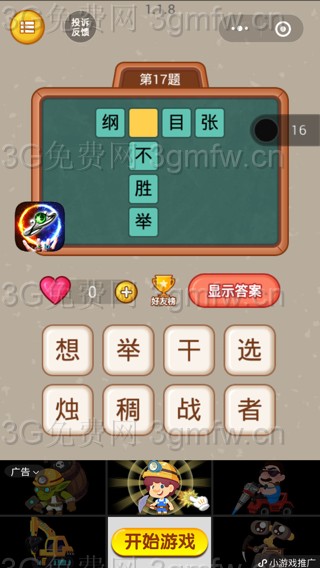 《全民猜字》是微信小程序上的一個根據(jù)兩個成語猜字的小游戲,很多玩家還不知道微信全民猜字第17題答案是什么?下面小編為你分享微信小程序全民猜字第17題答案如下: