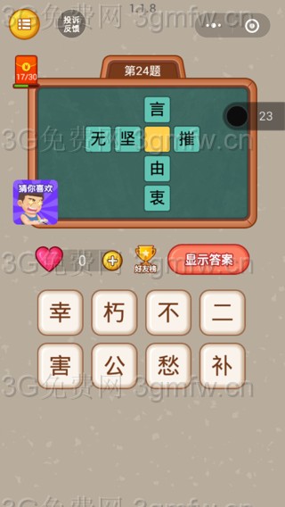 《全民猜字》是微信小程序上的一個根據(jù)兩個成語猜字的小游戲,很多玩家還不知道微信全民猜字第24題答案是什么?下面小編為你分享微信小程序全民猜字第24題答案如下: