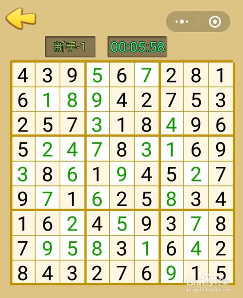 微信小程序《數獨游戲九宮格》新手第1關怎么過攻略答案