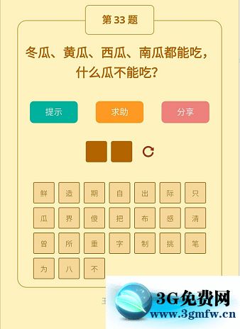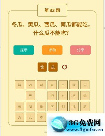 第三十三關,冬瓜、黃瓜、西瓜、南瓜、都能吃,什么瓜不能吃?