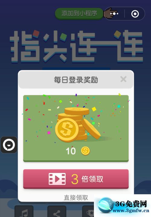 連續(xù)通過5關(guān)之后,會(huì)有“通關(guān)獎(jiǎng)勵(lì)”,點(diǎn)擊“直接領(lǐng)取”就可以獲得了游戲金幣。