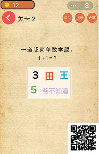 一道超簡單數(shù)學(xué)題1+1=?是微信小程序《腦力吃雞大作戰(zhàn)》游戲第2關(guān)的問題,很多玩家還知道答案是什么,下面小編為大家?guī)砦⑿拍X力吃雞大作戰(zhàn)第2關(guān)攻略。問題:一道超簡單數(shù)學(xué)題1+1=?。