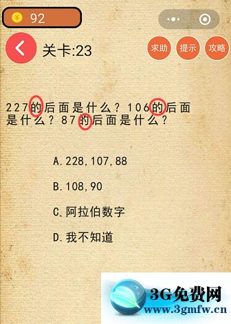 227的后面是什么106的后面是什么87的后面是什么是微信小程序《最強(qiáng)燒腦游戲腦力吃雞大作戰(zhàn)》游戲第23關(guān)的問題,很多玩家還知道答案是什么,下面小編為大家?guī)砦⑿抛顝?qiáng)燒腦游戲腦力吃雞大作戰(zhàn)第23關(guān)攻略。問題:227的后面是什么106的后面是什么87的后面是什么。