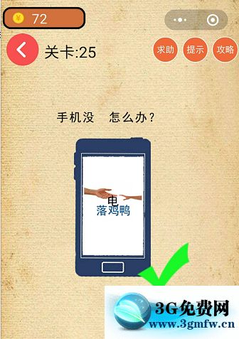 答案:將標(biāo)題中的“電”字移動(dòng)到手機(jī)屏幕上即可通關(guān)。