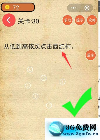 從低到高依次點(diǎn)擊西紅柿是微信小程序《最強(qiáng)燒腦游戲腦力吃雞大作戰(zhàn)》游戲第30關(guān)的問題,很多玩家還知道答案是什么,下面小編為大家?guī)砦⑿抛顝?qiáng)燒腦游戲腦力吃雞大作戰(zhàn)第30關(guān)攻略。問題:從低到高依次點(diǎn)擊西紅柿。