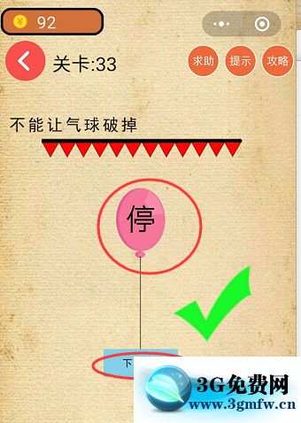 答案:當氣球在合適位置,漏出下一關(guān)的時候,點擊停,然后點擊下一關(guān)即可。