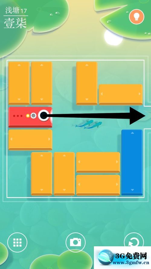 將小魚和圖中所選橙色方塊向左移動(dòng)。