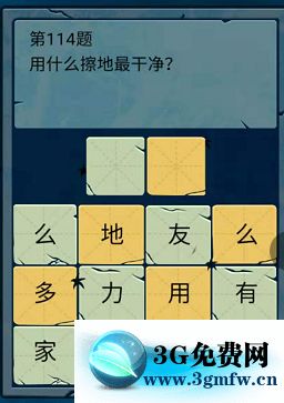 用什么擦地最干凈是微信小程序《腦筋急轉彎大亂斗》游戲第114關的問題,很多玩家還知道答案是什么,下面小編為大家帶來微信腦筋急轉彎大亂斗第114關攻略。