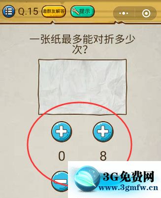 一張紙最多能對折多少次是微信小程序《史上最強的大腦2》第15關的問題,很多玩家還不知道答案是什么,接下來小編為你帶來微信史上最強的大腦2第15關攻略。問題:一張紙最多能對折多少次。