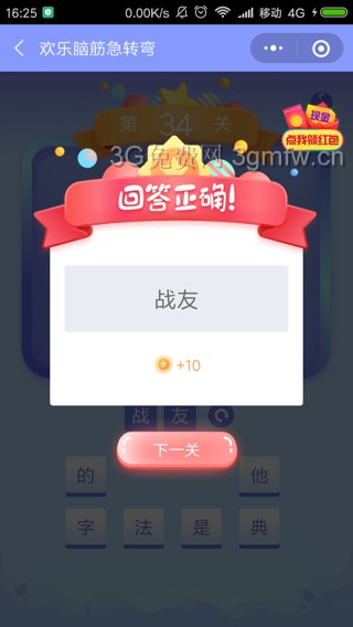 “不打不相識(shí)打兩字稱謂?”是微信小程序《歡樂腦筋急轉(zhuǎn)彎》第34關(guān)的問題,很多玩家不知道答案是什么?為了讓大家順利過關(guān),小編為你帶來了微信歡樂腦筋急轉(zhuǎn)彎第34關(guān)答案。題目:不打不相識(shí)打兩字稱謂?