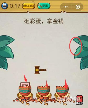 砸金蛋拿金錢是微信小程序《史上最強的大腦2》第17關的問題,很多玩家還不知道答案是什么,接下來小編為你帶來微信史上最強的大腦2第17關攻略。問題:砸金蛋拿金錢。