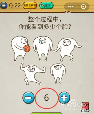 整個過程中你能看到多少個臉是微信小程序《史上最強的大腦2》第22關的問題,很多玩家還不知道答案是什么,接下來小編為你帶來微信史上最強的大腦2第22關攻略。問題:整個過程中你能看到多少個臉。