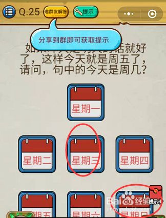 如果昨天是明天的話就好了這樣今天就是周五了句中的今天是周幾是微信小程序《史上最強(qiáng)的大腦2》第25關(guān)的問題,很多玩家還不知道答案是什么,接下來小編為你帶來微信史上最強(qiáng)的大腦2第25關(guān)攻略。問題:如果昨天是明天的話就好了這樣今天就是周五了句中的今天是周幾。