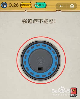 強(qiáng)迫癥不能忍是微信小程序《史上最強(qiáng)的大腦2》第26關(guān)的問(wèn)題,很多玩家還不知道答案是什么,接下來(lái)小編為你帶來(lái)微信史上最強(qiáng)的大腦2第26關(guān)攻略。問(wèn)題:強(qiáng)迫癥不能忍。