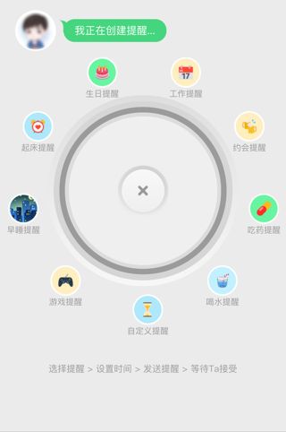 “有愛提醒”是一款社交鬧鐘小程序,幫助用戶在微信中快速添加好友提醒。 擔(dān)心忘記生日、約會(huì)、會(huì)議、吃藥、喝水、紀(jì)念日么?使用有愛提醒可以幫助你輕松管理你和微信好友們的一切碎片事件。 你既可以發(fā)送提醒給好友,還可以將提醒碼發(fā)送給朋友或者設(shè)置為頭像,這樣你的好友就可以快速給你添加提醒內(nèi)容了。