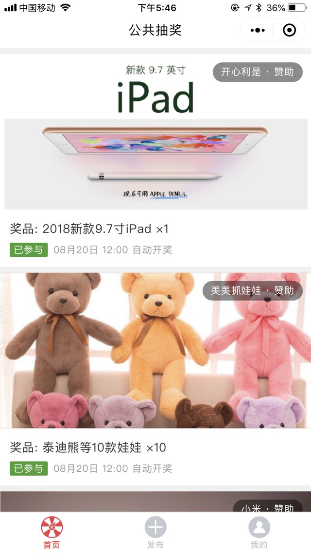 365天天抽獎,每日領福利!這款小程序適用于新產品品牌推廣、年會抽獎、活動抽獎、群里抽獎以及公眾號抽獎的場景,方便簡單、公平公正!小程序類別:工具開發者:蘇州樂圖星美網絡科技有限公司掃碼體驗小程序