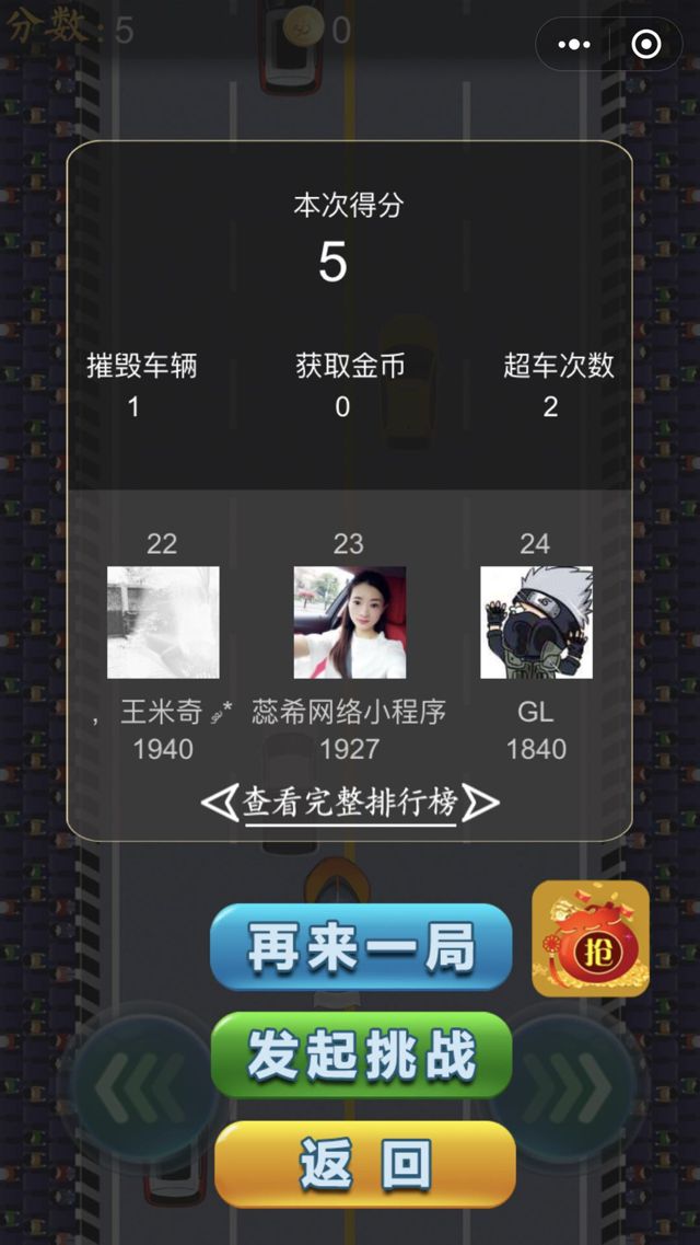 掃碼體驗小程序極限賽車游戲最強賽車,看看誰跑的快小程序類別:游戲開發者:個人小程序截圖