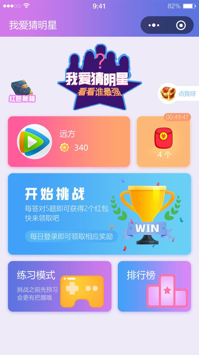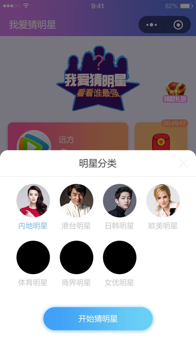 我愛猜明星一款全民猜明星的娛樂游戲,包括娛樂明星,商界明星,歐美明星,日本女明星等掃碼體驗小程序小程序類別:游戲開發者:山西笨人網絡科技有限公司小程序截圖