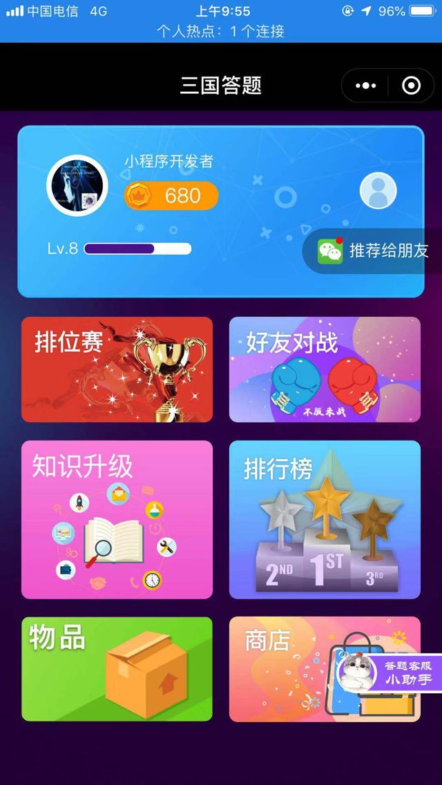 三國答題是一款答題類的小程序,精選了各種三國知識,喜歡三國的朋友快來加入吧!掃碼體驗小程序小程序類別:教育開發者:李文豪小程序截圖