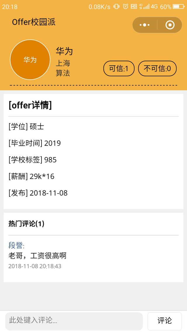 掃碼體驗小程序“Offer校園派”是一款簡單易用的校園生活助手工具,真實靠譜的校招薪資爆料,簡單易用的活動提醒、課程表,還有福利薅羊毛信息小程序類別:工具開發者:合肥然冉貨物運輸有限公司小程序截圖