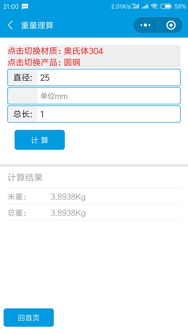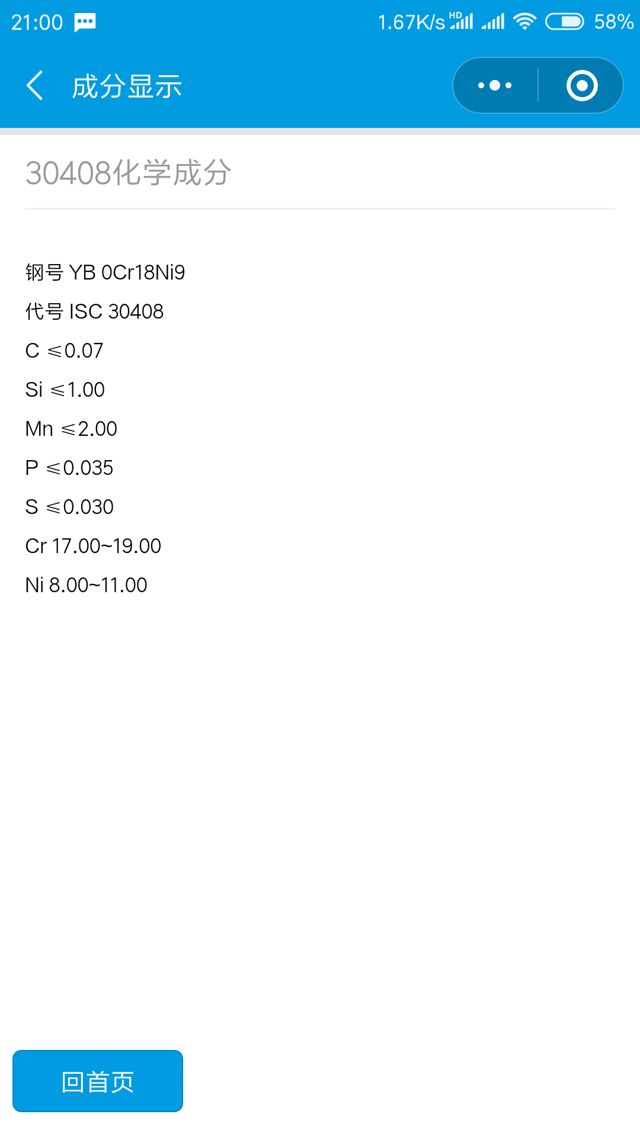 掃碼體驗(yàn)小程序不銹鋼小助手不銹鋼牌號(hào)查詢,重量理算小程序類別工具開(kāi)發(fā)者無(wú)錫寶文不銹鋼有限公司小程序截圖