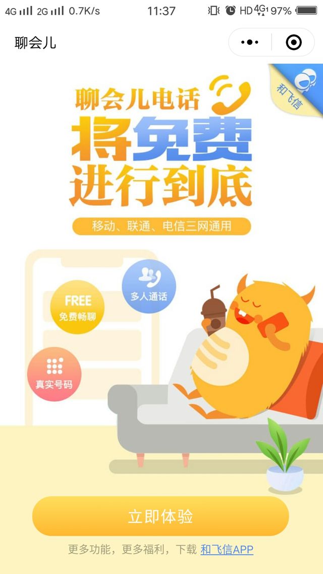 聊會兒是一款0資費(fèi)、0流量的通話小程序;可實(shí)現(xiàn)1對1、1對多免費(fèi)通話。用聊會兒,朋友閑聊、工作洽談兩不誤!小程序類別:社交開發(fā)者:中移互聯(lián)網(wǎng)有限公司掃碼體驗(yàn)小程序小程序截圖