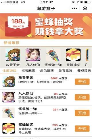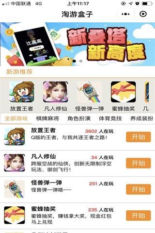 淘游盒子愿為廣大玩家提供有趣好玩的游戲小程序類別:游戲開發者:北京拓美文化傳媒股份有限公司小程序截圖