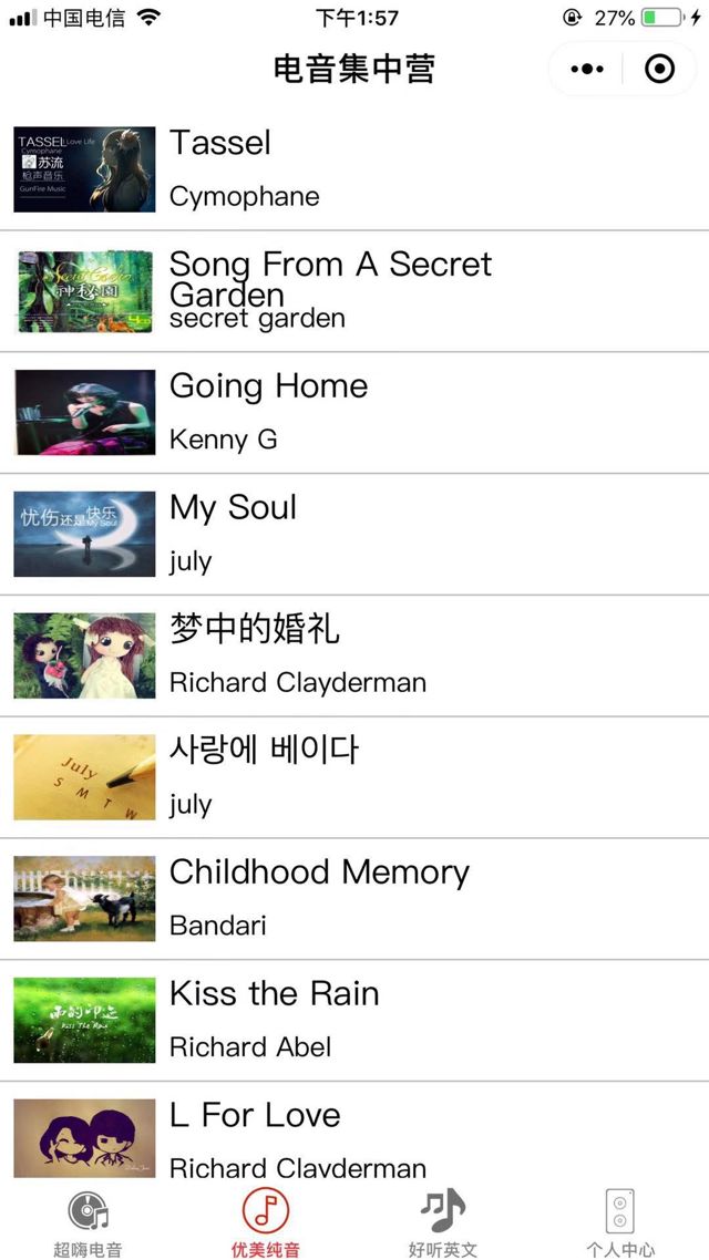 掃碼體驗小程序愛聽純音樂網絡好聽的純音樂,背景音樂,都在愛聽純音樂!小程序類別:音樂音頻開發者:深圳市偶家信息科技有限公司小程序截圖