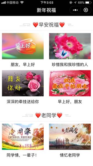 掃碼體驗小程序天天一個祝福美好的節(jié)日里,訂制一份屬于自己的祝福,送給親人,送給朋友,送給Ta!小程序類別:工具開發(fā)者:山西小程序科技有限公司小程序截圖