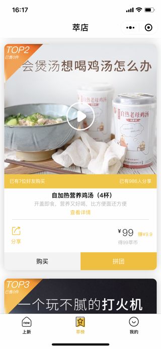 掃碼體驗小程序萃店短視頻社交電商小程序,逼格好貨拼團買小程序:類別網絡購物開發者:杭州有數科技有限公司小程序截圖