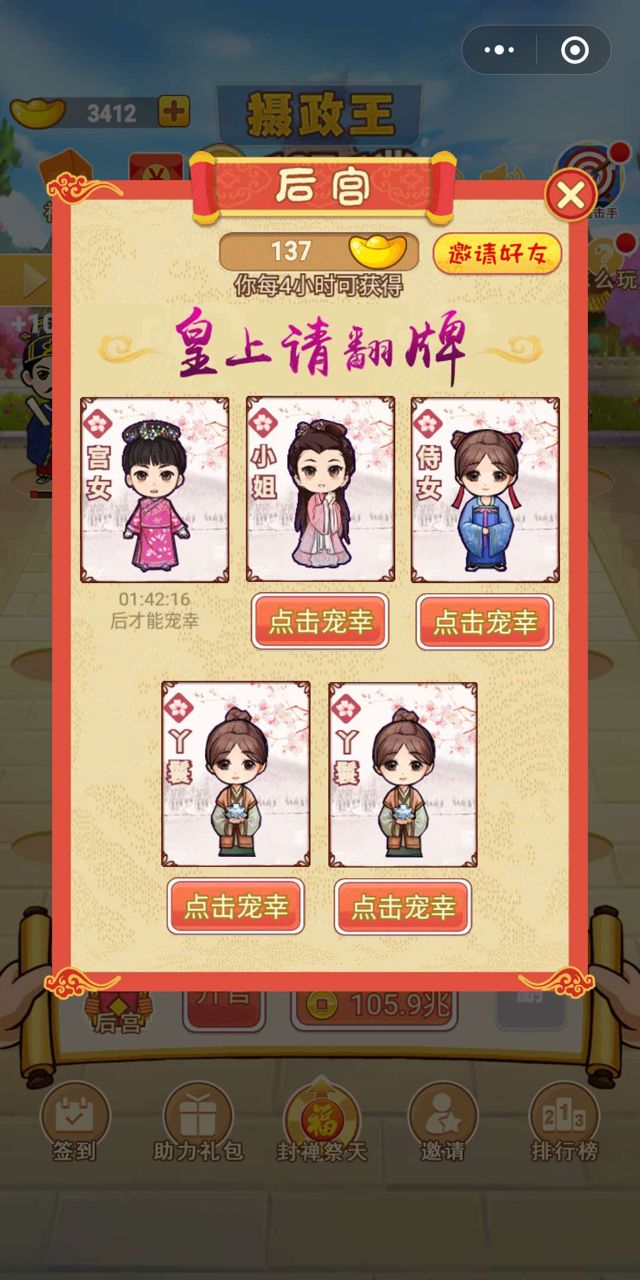 掃碼體驗小程序只有玩了我的好友是皇上這款游戲,才能體會到當皇上究竟有多爽!小程序類別:游戲開發者:由個人開發小程序截圖