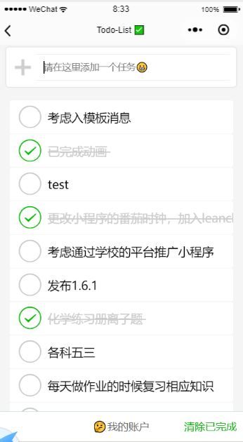 掃碼體驗小程序我的任務清單一個簡單的TODO+list小程序類別:工具開發者:個人小程序截圖