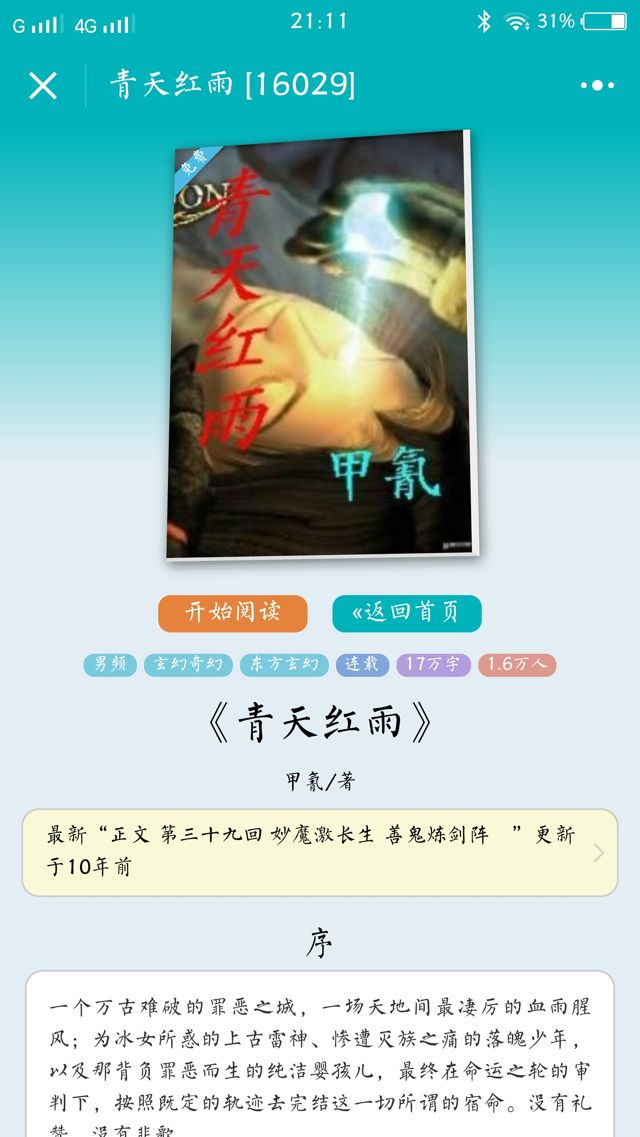 掃碼體驗小程序一起看免費小說是中文在線旗下17K小說網提供的小說在線閱讀服務, 80萬原創小說限時免費放送, 2000知名作家正版授權, 500家出版機構提供海量小說資源. 如果你喜歡請轉發給其它讀者朋友們, 同時讀者們提出意見和反饋, 謝謝.小程序類別:閱讀小程序截圖