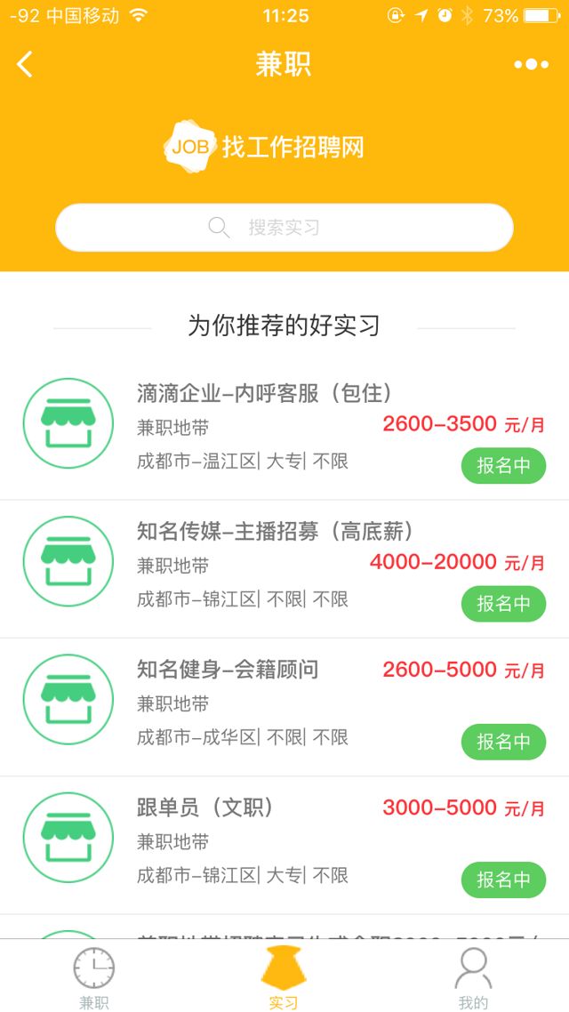 掃碼體驗小程序找工作招聘網覆蓋全國200多個城市,為求職者提供準確,全面的職位招聘信息,找工作信息,求職信息,人才招聘信息,為企業提供人才招聘服務。小程序類別:生活服務開發者:成都兼職地帶信息技術有限公司小程序截圖