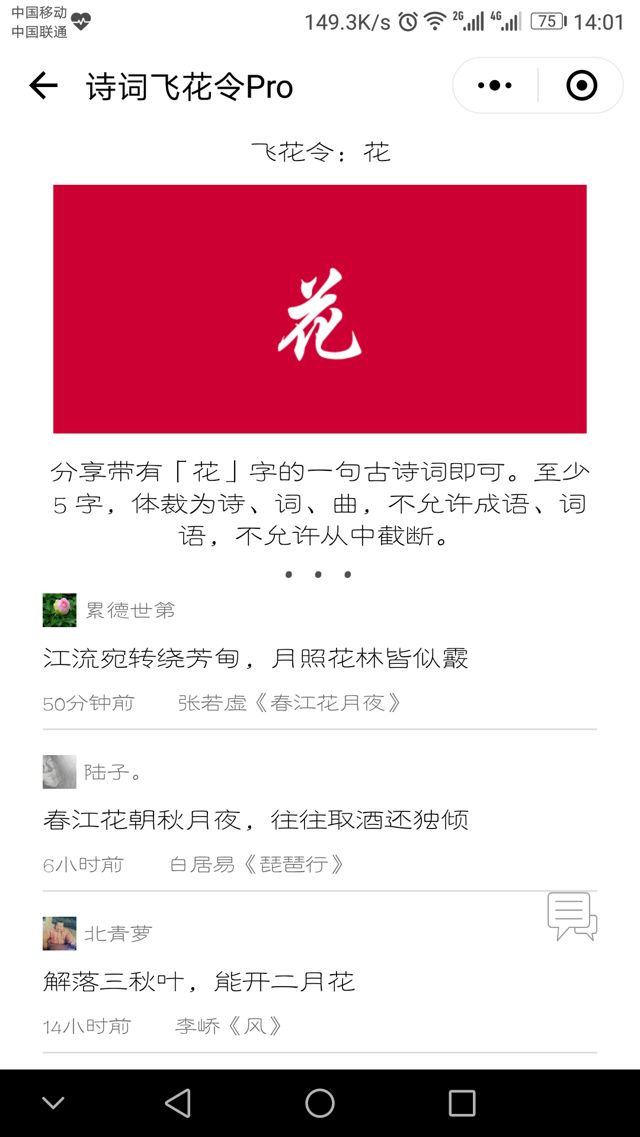 微信詩詞飛花令Pro二維碼_微信小程序詩詞飛花令Pro介紹