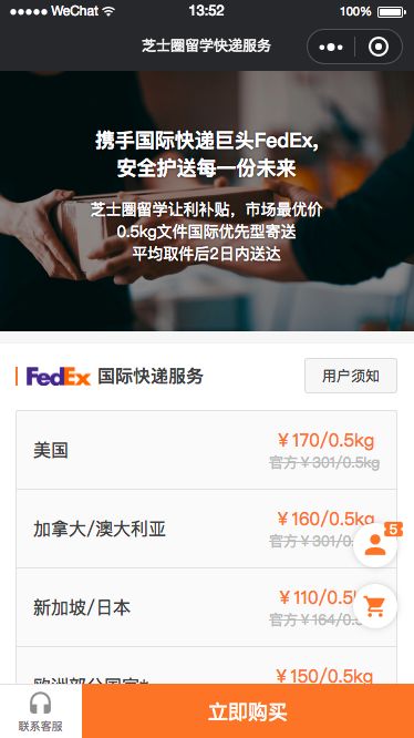 掃碼體驗小程序芝士圈留學聯(lián)合 FedEx、DHL 開通的專門針對留學文書材料的快遞服務。分類:教育開發(fā)者:南京雷貝教育信息咨詢有限公司小程序截圖