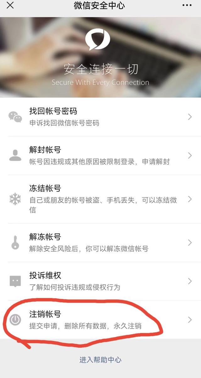 1、如果微信錢包里沒有資金的話,我們就可以直接選擇注銷賬號,因為微信里有實名認證的個人隱私信息,還有銀行卡等信息,因此最好永久注銷微信賬號。